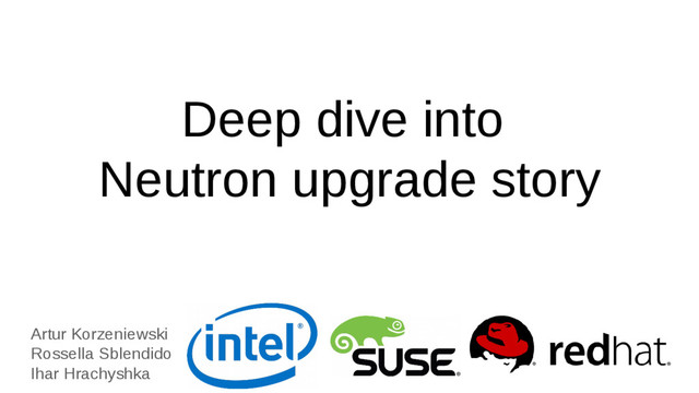 on database schema a. neutron-db-manage upgrade --expand 3. Upgrade Neutron Server 4. Offline data migration - offline a. neutron-db-manage has_offline_migrations b. neutron-db-manage upgrade --contract 5. Start Neutron Server 6. Upgrade Network node a. L2 agent first Neutron upgrade overview - DVR case Compute node L2 agent Liberty L3 agent Liberty Metadata Liberty Network node L3 Agent Mitaka L2 agent Mitaka Metadata Mitaka DHCP Mitaka Controller node Neutron Server Mitaka Database - Mitaka Data