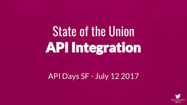 There has been massive adoption of Web APIs, and many stats and commentary exist around API exposure and business models - but what about API integration? This presentation will take a look at the challenges that exist around integration in 2017, looking at data we’ve collected from a large variety of enterprise cloud apps. We’ll look at some of the trends we are seeing among service providers that ease the developer burden and make some recommendations to ensure the APIs we’re building today are fit for purpose tomorrow.