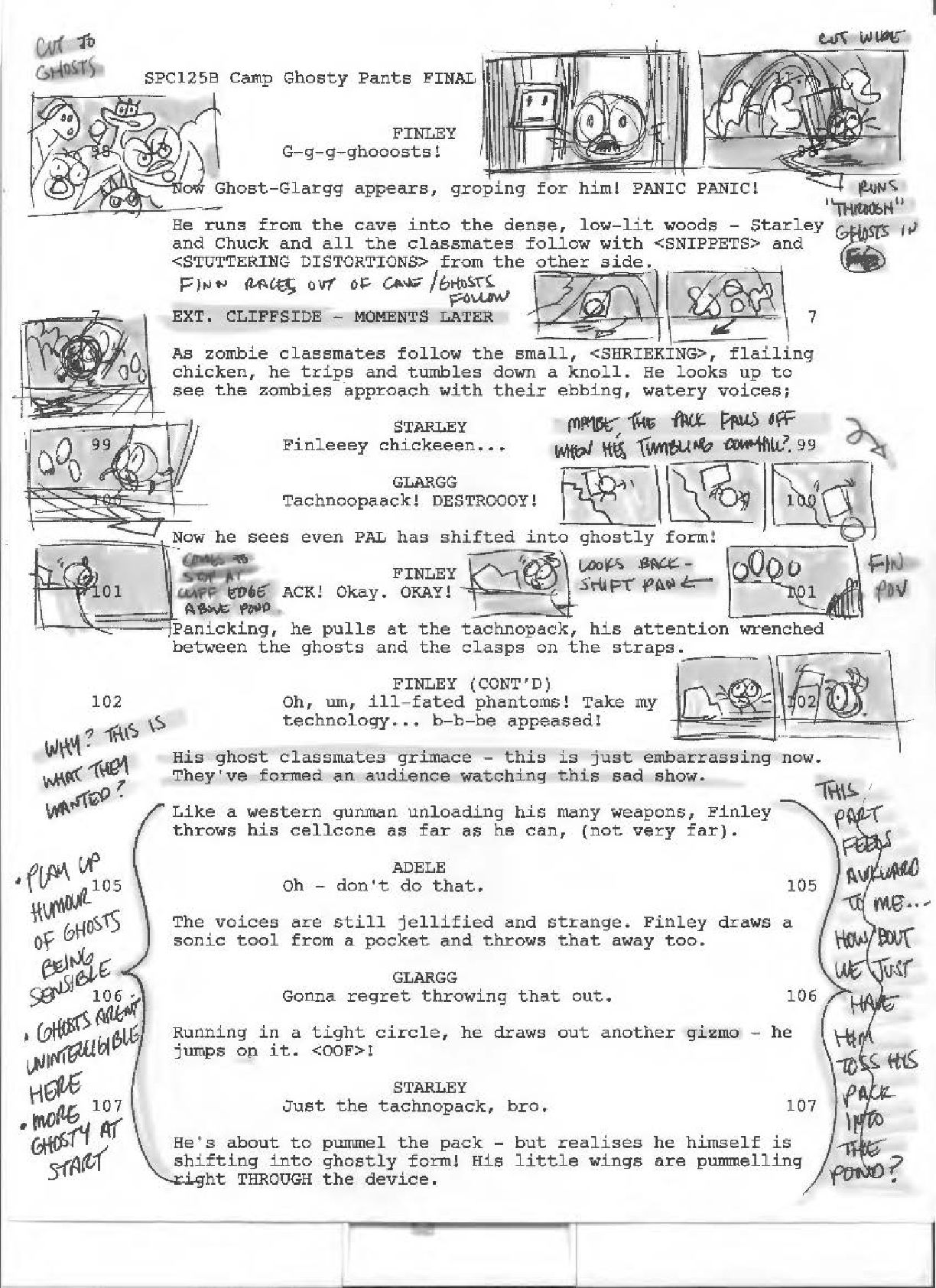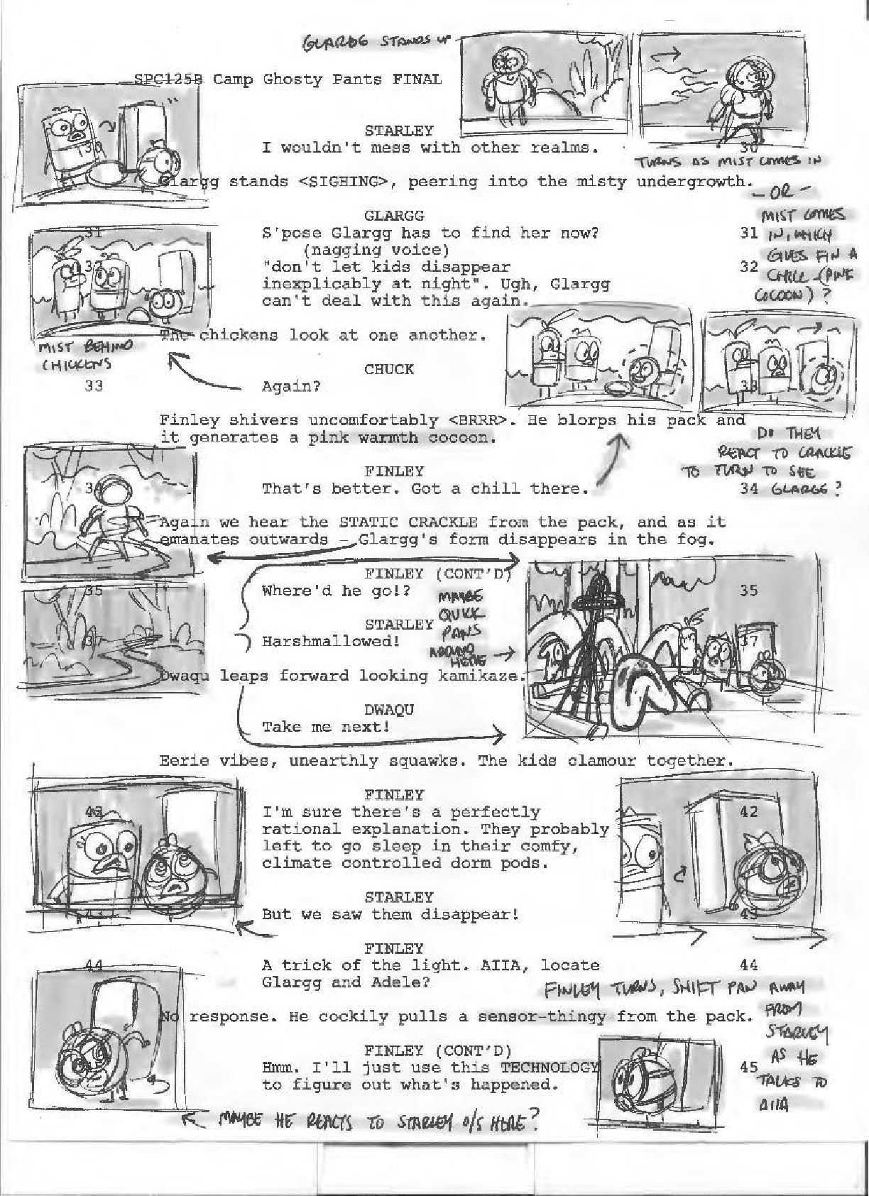 I did these thumbnails on a script for an episode of Space Chickens in Space. I was the Storyboard Supervisor on the show, and in addition to overseeing the work of the Storyboard Team, I also boarded two episodes myself.