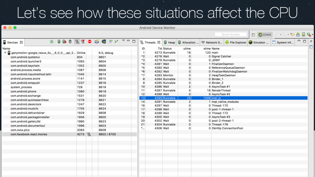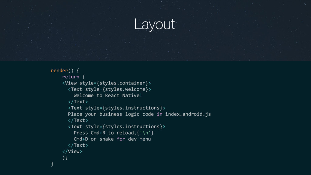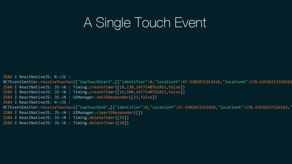 ReactNativeJS: JS->N : UIManager.createView([5,"RCTText",1,{"fontSize":20,"textAlign":"center","margin":10,"accessible":true,"allowFontScaling":true,"ell 2670 I ReactNativeJS: JS->N : UIManager.createView([6,"RCTRawText",1,{"text":"Welcome to React Native!"}]) 2670 I ReactNativeJS: JS->N : UIManager.setChildren([5,[6]]) 2670 I ReactNativeJS: JS->N : UIManager.createView([7,"RCTText",1,{"textAlign":"center","color":- 13421773,"marginBottom":5,"accessible":true,"allowFontScaling":true,"ellipsizeMode":"tail"}]) 2670 I ReactNativeJS: JS->N : UIManager.createView([8,"RCTRawText",1,{"text":"Place your business logic code in index.android.js"} 2670 I ReactNativeJS: JS->N : UIManager.setChildren([7,[8]]) 2670 I ReactNativeJS: JS->N : UIManager.createView([9,"RCTText",1,{"textAlign":"center","color":- 13421773,"marginBottom":5,"accessible":true,"allowFontScaling":true,"ellipsizeMode":"tail"}]) 2670 I ReactNativeJS: JS->N : UIManager.createView([10,"RCTRawText",1,{"text":"Press Cmd+R to reload,"}]) 2670 I ReactNativeJS: JS->N : UIManager.createView([12,"RCTRawText",1,{"text":"\n"}]) 2670 I ReactNativeJS: JS->N : UIManager.createView([13,"RCTRawText",1,{"text":"Cmd+D or shake for dev menu"}]) 2670 I ReactNativeJS: JS->N : UIManager.setChildren([9,[10,12,13]]) 2670 I ReactNativeJS: JS->N : UIManager.setChildren([4,[5,7,9]]) 2670 I ReactNativeJS: JS->N : UIManager.setChildren([3,[4]]) 2670 I ReactNativeJS: JS->N : UIManager.setChildren([2,[3]]) 2670 I ReactNativeJS: JS->N : UIManager.setChildren([1,[2]])