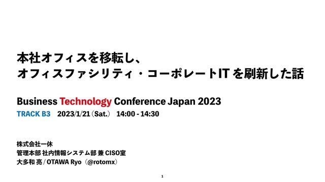 2023/1/21 Business Technology Conference Japan 2023 #BTCONJP で発表した資料です