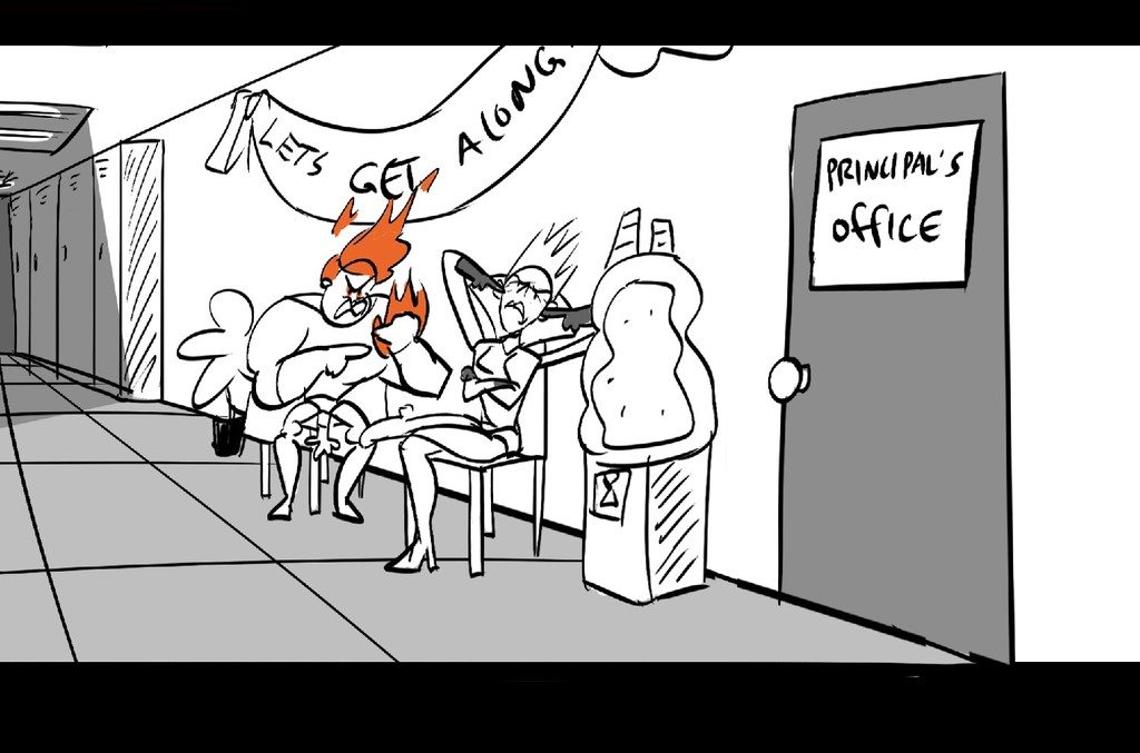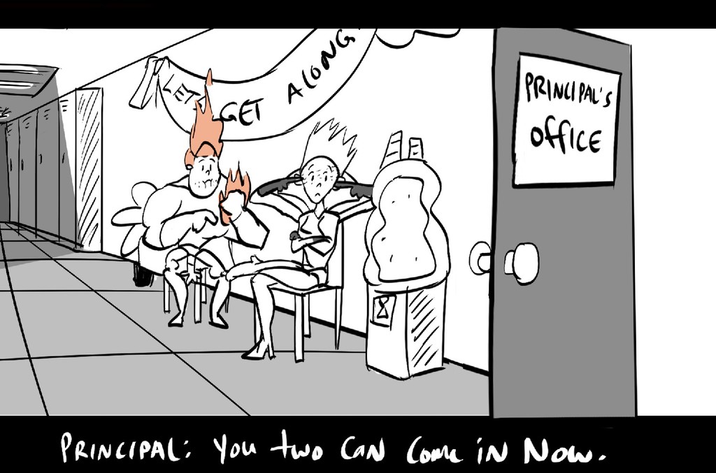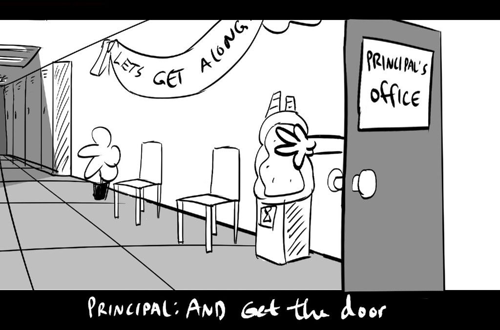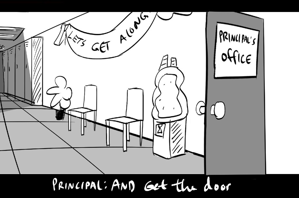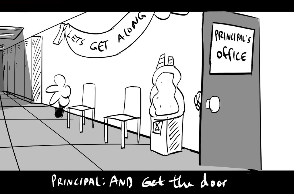A pair of trouble-makers get sent to the principal's office.