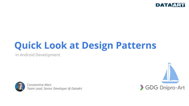 Brief presentation about GOF Design Patterns, with short overview of Android applications of the patterns and other types of patters in software development (non-GOF). Made for the First Meetup of GDG Dnipro-Art in April 2017