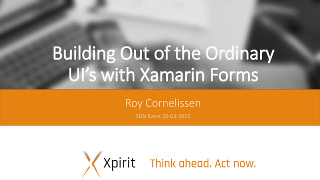 In this session I'll show a UI that is highly customized using custom renderers, and tell you about the options you have as a developer to expand on the out-of-the-box Xamarin.Forms experience. Using an app that is actually in the AppStores as an example, I'll run through code samples and tips & tricks on how to solve platform specific issues when working with Xamarin.Forms.