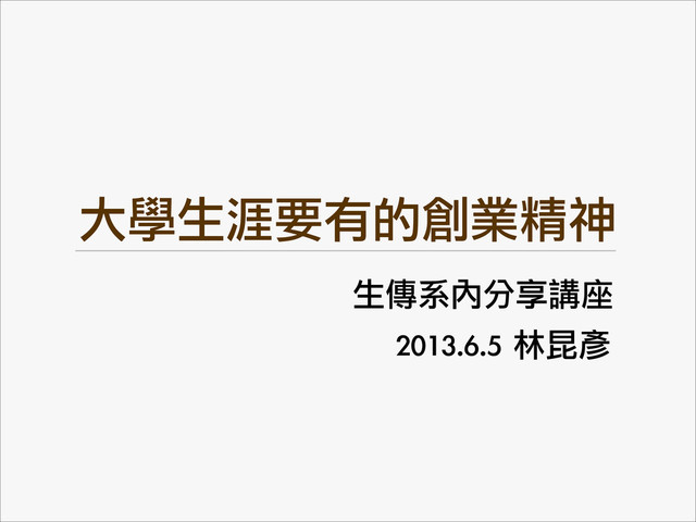 大學生涯要有的創業精神 生傳系內分享講座 2013.6.5 林昆彥