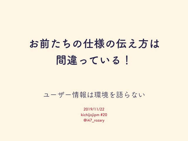 ͓લͨͪͷ༷ͷ͑ํ ؒҧ͍ͬͯΔʂ LJDIJKPKJQN !J@SP[BSZ ࣗͷ ͍ͨ ϢʔβʔใڥΛޠΒͳ͍