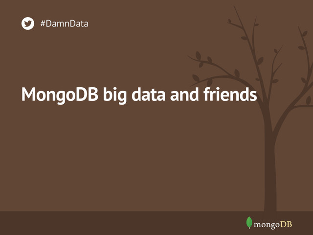 The term Big Data seems to have become a marketeers battle ground, however, the trend of ever increasing volumes of data is only growing and with challenges of how to make sense of that data. We'll look at how MongoDB was designed to store vast amounts of data and how it can be used alone or with other big data processing systems (hadoop) to make sense of big data.