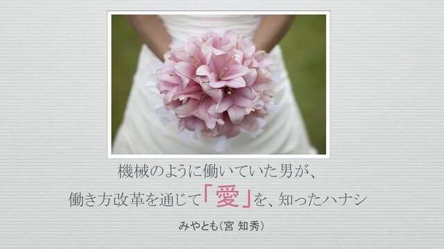 機械のように働いていた男が、 働き方改革を通じて「愛」を、知ったハナシ _ みやとも(宮 知秀)