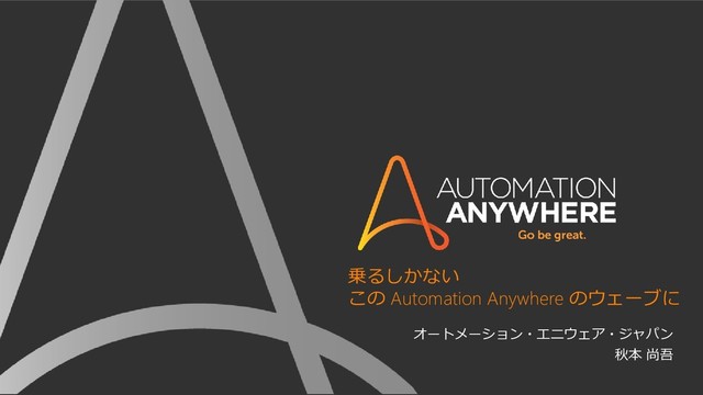 乗るしかない この Automation Anywhere のウェーブに オートメーション・エニウェア・ジャパン 秋本 尚吾