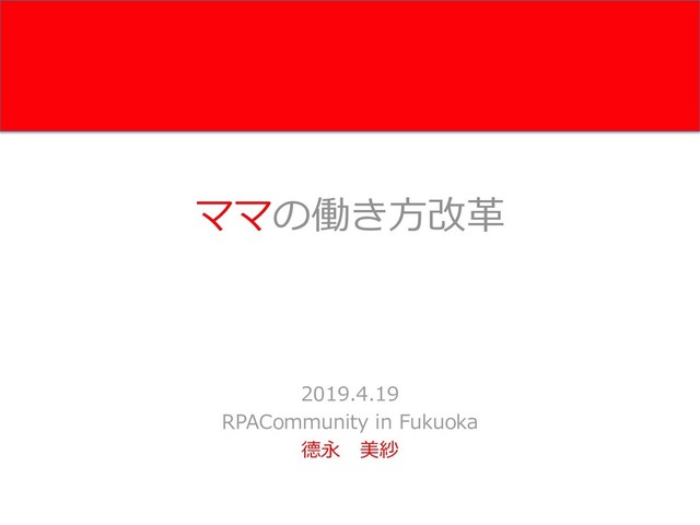 ママの働き方改革 2019.4.19 RPACommunity in Fukuoka 德永 美紗