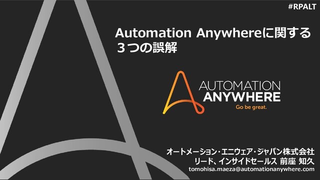 Automation Anywhereに関する 3つの誤解 オートメーション・エニウェア・ジャパン株式会社 リード、インサイドセールス 前座 知久