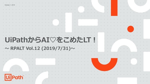 UiPathからAI♡をこめたLT! ~ RPALT Vol.12 (2019/7/31)~ October 1, 2019