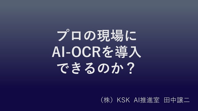 プロの現場に AI-OCRを導入 できるのか? (株)KSK AI推進室 田中譲二