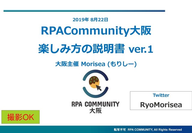 転写不可 RPA COMMUNITY, All Rights Reserved RPACommunity大阪 楽しみ方の説明書 ver.1 2019年