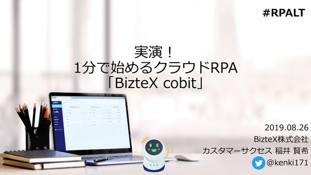 実演︕ 1分で始めるクラウドRPA 「BizteX cobit」 2019.08.26 BizteX株式会社 カスタマーサクセス 稲井 賢希 @kenki171