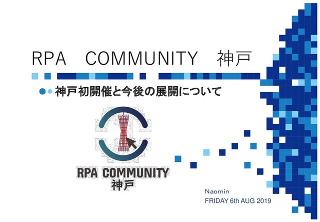 RPA COMMUNITY 神戸 神戸初開催と今後の展開について Naomin FRIDAY 6th AUG 2019