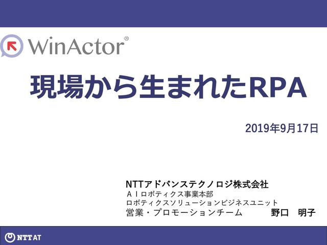 ※UMS (Unified Management Support System) 課題 開発 あらゆる業務システムがWEBシステムに置き換えられたが、 システムに合わせるための業務、システム化されない定形業務 に多くの時間がかかる。 2010年 NTT研究所でUMSを開発 「ユーザビリティが高く」「低コスト・短期間で開発ができる」 ツールを現場に届けたいというコンセプトの元、 人間の高度な判断が不要な冗長・単調な部分を自動化するシステ ム「UMS」を開発。 2011年からNTTグループ内で商用システムに適用 課題を認識しているのは 各々の現場