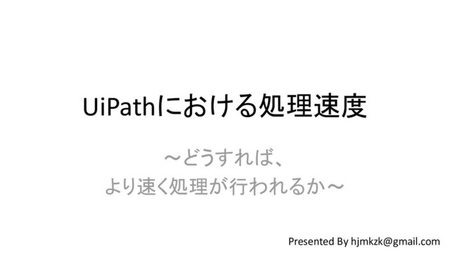 UiPathにおける処理速度 ~どうすれば、 より速く処理が行われるか~ Presented By