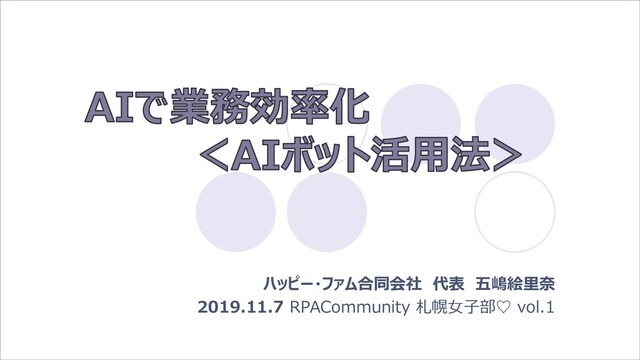 191107 AIで業務効率化 ハッピー・ファム合同会社代表 五嶋絵里奈さん