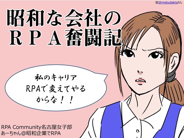 私のキャリア RPAで変えてやる からな!! RPA Community名古屋女子部 あーちゃん@昭和企業でRPA 絵@matudaktaさん