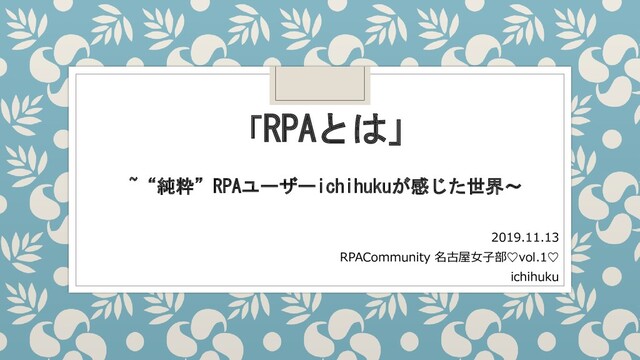 「RPAとは」 2019.11.13 RPACommunity 名古屋女子部♡vol.1♡ ichihuku ~“純粋”RPAユーザーichihukuが感じた世界~