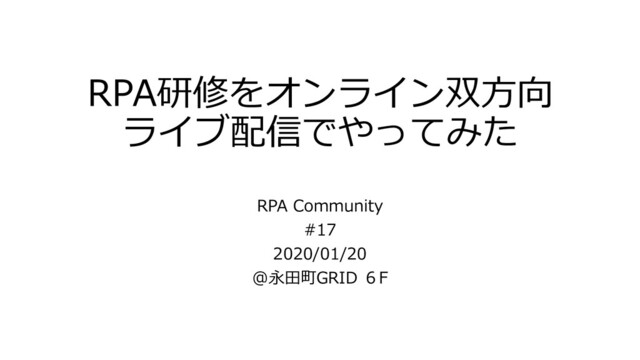 RPA研修をオンライン双方向 ライブ配信でやってみた RPA Community #17 2020/01/20 @永田町GRID 6F