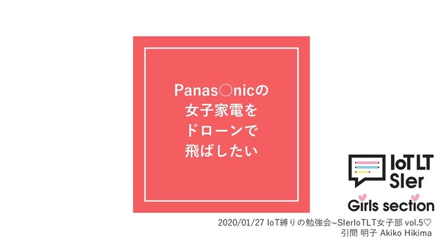 Panas◦nicの ⼥⼦家電を ドローンで ⾶ばしたい 2020/01/27 IoT縛りの勉強会~SIerIoTLT⼥⼦部 vol.5♡ 引間 明⼦ Akiko