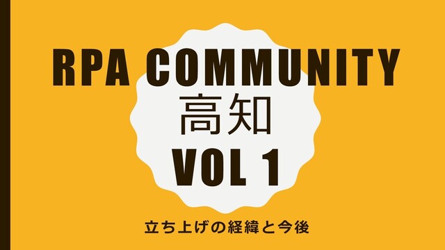 RPA COMMUNITY 高知 VOL 1 立ち上げの経緯と今後