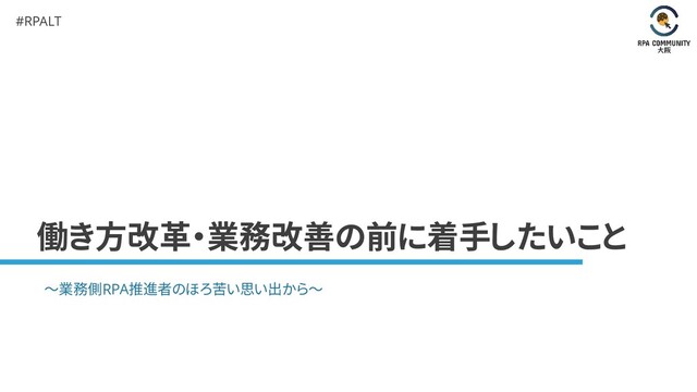 #RPALT 働き方改革・業務改善の前に着手したいこと ~業務側RPA推進者のほろ苦い思い出から~