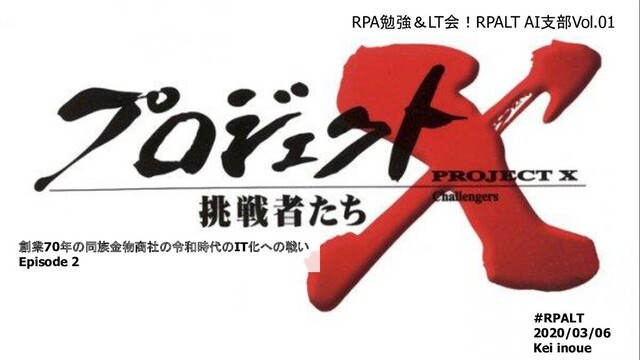 #RPALT 2020/03/06 Kei inoue 創業70年の同族金物商社の令和時代のIT化への戦い Episode 2 RPA勉強&LT会!RPALT AI支部Vol.01