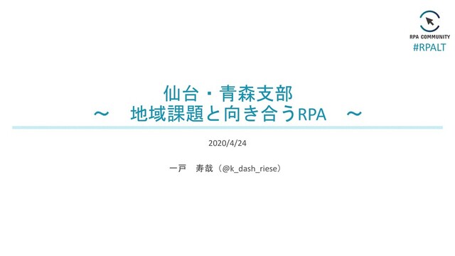 #RPALT 仙台・青森支部 ~ 地域課題と向き合うRPA ~ 2020/4/24 一戸 寿哉(@k_dash_riese)