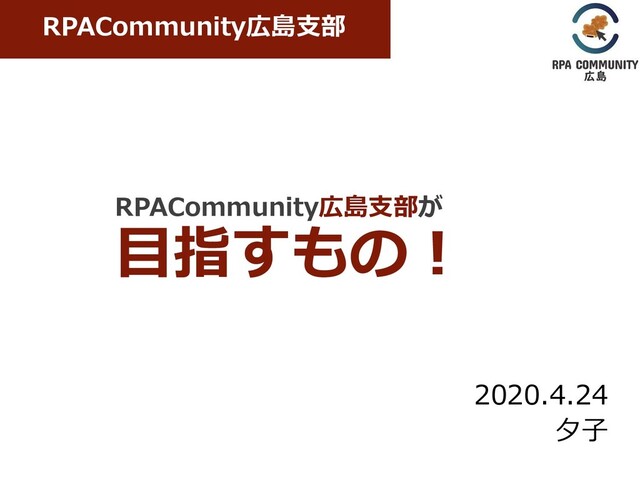 RPACommunity広島支部が 目指すもの! 2020.4.24 夕子 RPACommunity広島支部