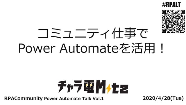 #RPALT コミュニティ仕事で Power Automateを活用! RPACommunity Power Automate Talk Vol.1 2020/4/28(Tue)