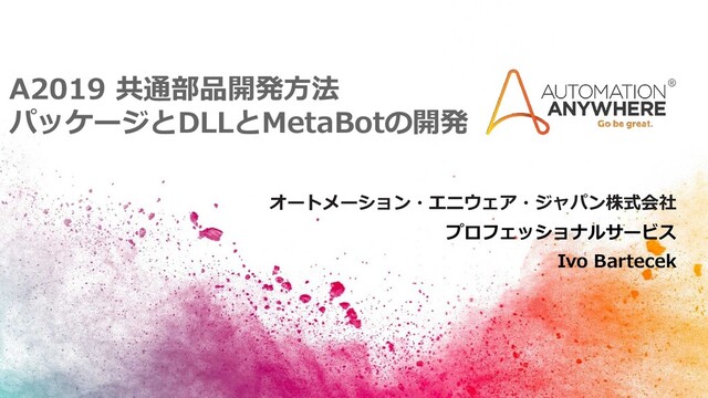 A2019 共通部品開発方法 パッケージとDLLとMetaBotの開発 プロフェッショナルサービス Ivo Bartecek オートメーション・エニウェア・ジャパン株式会社