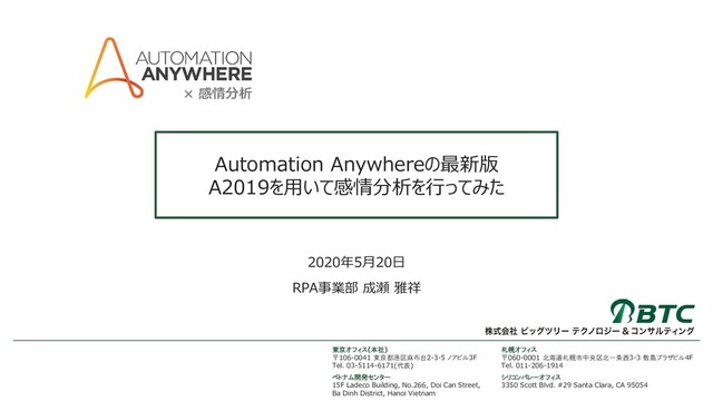 200520 AutomationAnywhereの最新版A2019を用いて感情分析を行ってみた 成瀬 雅祥