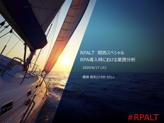タスク 成果物 #RPALT AS-IS Fit-Gap TO-BE 事前準備 現状把握 (プロセス・差異) 標準化阻害要因特定/ 標準化施策定義 標準業務プロセス定義 事前 準備 現状プロセス 説明 ヒアリングによ る業務プロセ スまとめ作業 競合他社との 比較 現状プロセス 作成 &他社との 差異比較 現状業務 プロセスフロー ヒアリング表 各部門 課題表 差異原因 の確認 ヒアリング 標準化 阻害要 因特定 ヒアリング表 RPA化 対象候補 ヒアリングおよび他社との差 異比較がもっとも大切 標準化すべきポイントが分 からなくなるから この範囲だけは+αでお金を払ってでも ベテランorやり手にやってもらうべき 標準プロ セス作成 &RPA 化対象 選定 標準プロセス レビュー 標準プロ セス合意 標準化 範囲特 定&自 動化対 象議論 6週間 3週間 4週間 標準業務プロ セスフロー 標準阻害要 因一覧