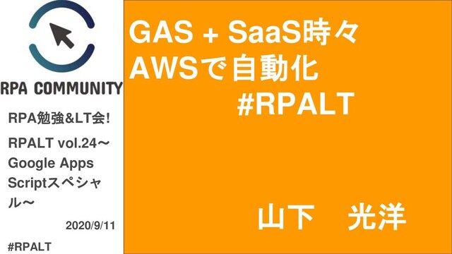 GAS + SaaS時々 AWSで自動化 #RPALT RPA勉強<会! RPALT vol.24~ Google Apps