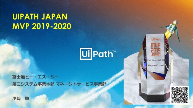 UIPATH JAPAN MVP 2019-2020 富士通ビー・エス・シー 第三システム事業本部 マネージドサービス事業部 小﨑 肇