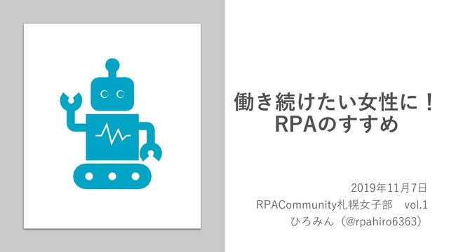 働き続けたい女性に! RPAのすすめ 2019年11月7日 RPACommunity札幌女子部 vol.1 ひろみん(@rpahiro6363)
