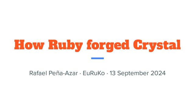 How Ruby forged Crystal Rafael Peña-Azar · EuRuKo · 13