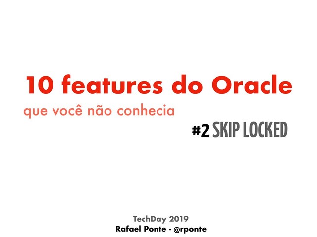 Para segunda feature nesta série, apresento o SKIP LOCKED, na qual nos possibilita usar uma tabela no banco de dados como uma FILA (QUEUE) de forma eficiente e simples. Graças a ela conseguimos delegar todo o controle de locking e concorrência para o banco de dados, facilitando assim a implementação dos clientes (producers e consumers) das mensagens na fila. Com isso, obtemos um alto grau de performance e principalmente escalabilidade sem a necessidade de abrir mão do poder do banco de dados ou ter que adicionar um novo componente de software (como um JMS Broker) na arquitetura da solução.