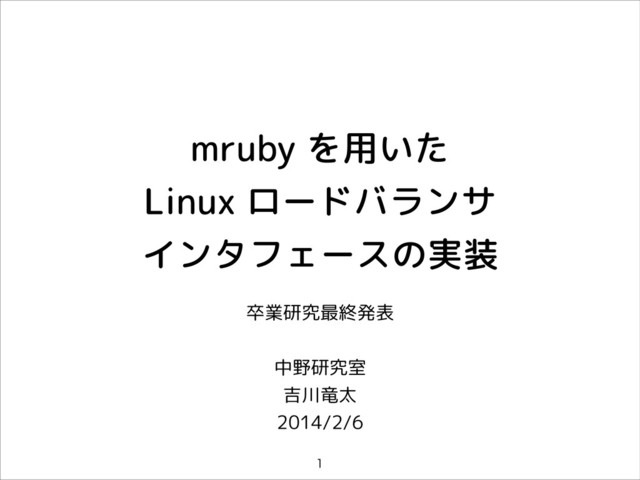 mruby を用いた Linux ロードバランサ インタフェースの実装 卒業研究最終発表 ! 中野研究室 吉川竜太 2014/2/6