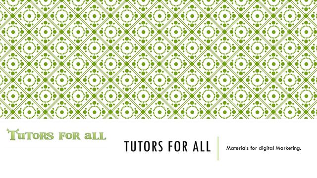 TUTORS FOR ALL Materials for digital Marketing.