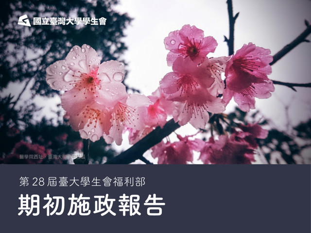 期初施政報告 醫學院西址,臺灣大學城中校區 第 28 屆臺大學生會福利部