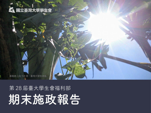 期末施政報告 基隆路三段 156 巷,臺灣大學校總區 第 28 屆臺大學生會福利部