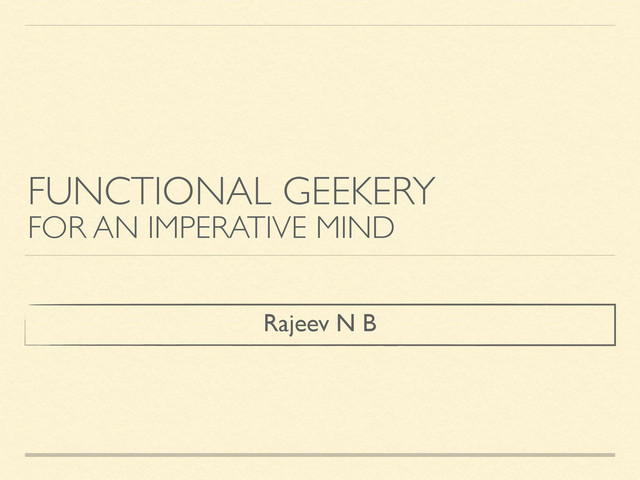 FUNCTIONAL GEEKERY FOR AN IMPERATIVE MIND Rajeev N B