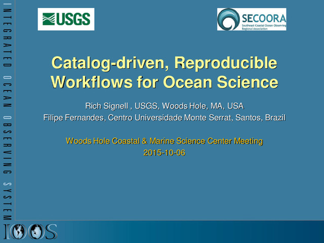 piers, towed sensors) Gridded data (model outputs, satellite) OGC Sensor Observation Service (SOS) OPeNDAP with Climate and Forecast Conventions XML or CSV Binary DAP using Climate and Forecast (CF) conventions Images of data OGC Web Map Service (WMS) GeoTIFF, PNG etc. -possibly with standardized styles Data Type Web Service Encoding