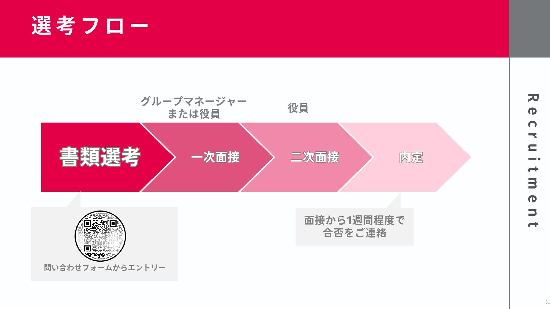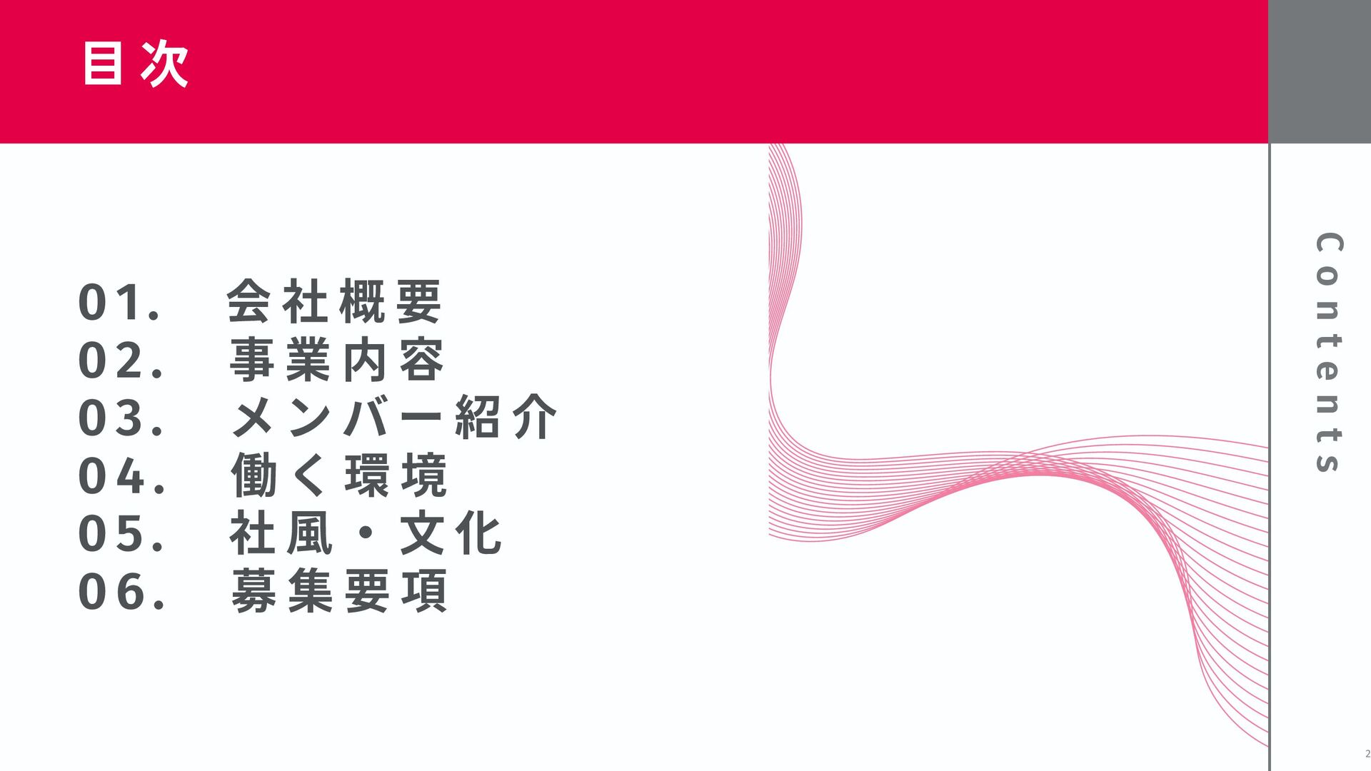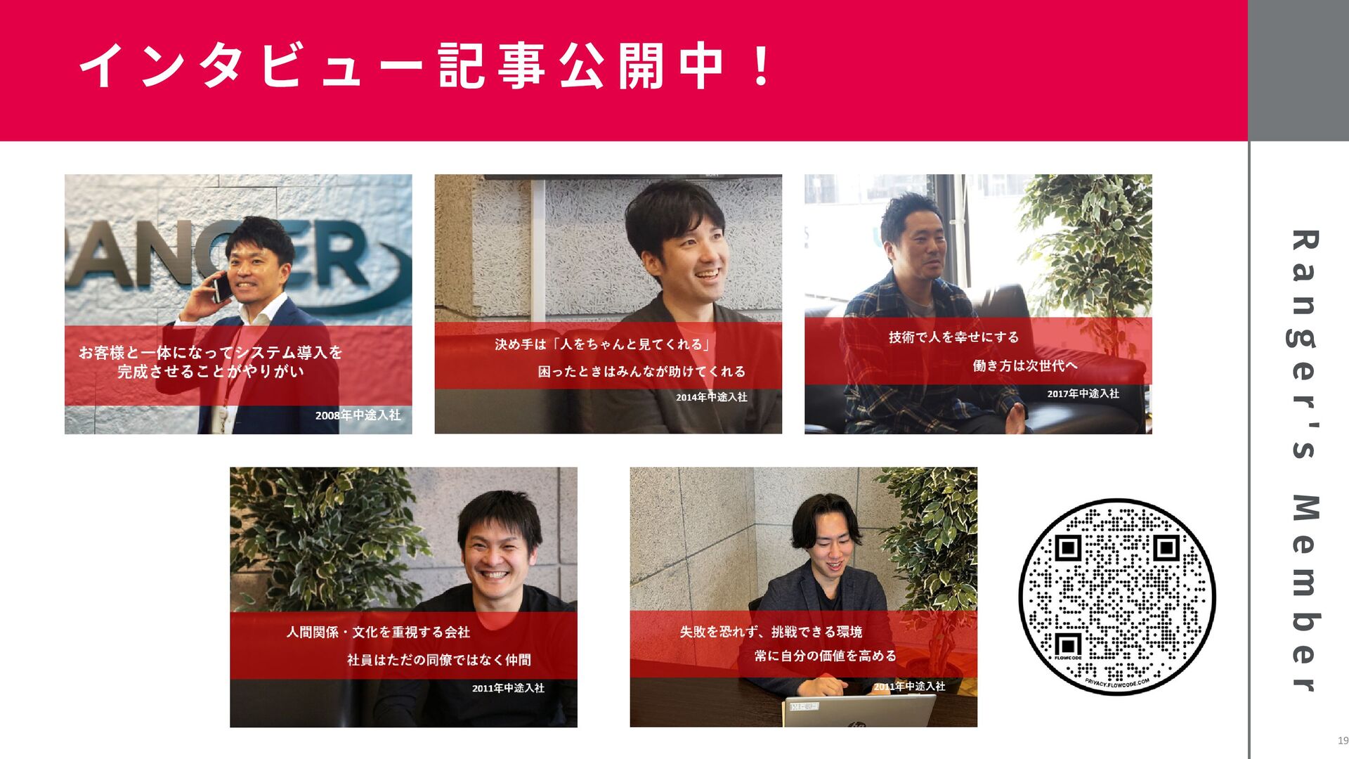 R e c r u i t m e n t 当社はエンジニアが中心となってサービスの開発や 提案を行っています。 エンジニア自ら顧客と直接対話することで、課題の 早期発見・解決を図ることが可能と考えているから です。 目先の利益計算よりも、エンジニアならではの自由 な発想で顧客課題を解決に導く仕事ができます。 広く様々な技術に関心を持ち、人のつながりを大切 にできる方のエントリーをお待ちしています。