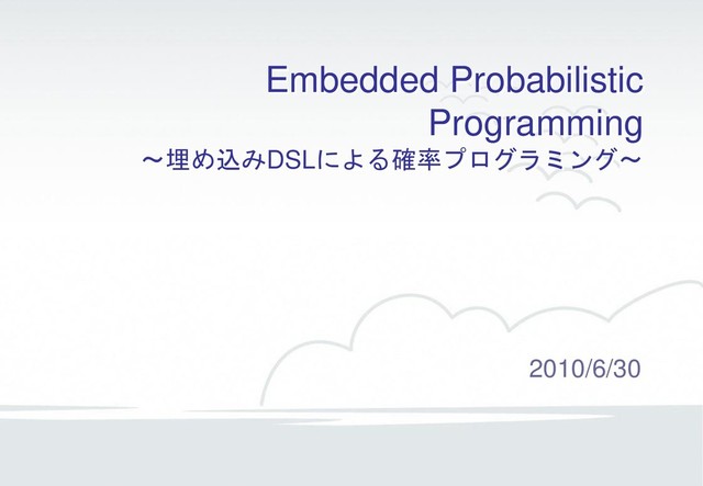 a) type PV a = [(Prob, VC a)] type PM a = (a -> PV Bool) -> PV Bool dist ch k = map (¥(p,v) -> (p, C (k v))) ch con e1 e2 k = e1 (¥v1 -> if v1 then e2 k else k False) dis e1 e2 k = e1 (¥v1 -> if v1 then k True else e2 k) if_ et e1 e2 k = et (¥t -> if t then e1 k else e2 k)