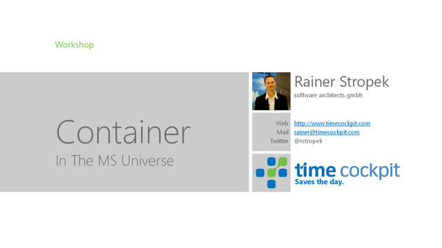 Microsoft has fallen in love with containers and Docker. The goal of my session at Continuous Lifecycle Conference (Germany) is to give an overview of how you can use containers and Docker as a Microsoft-oriented DevOps team.